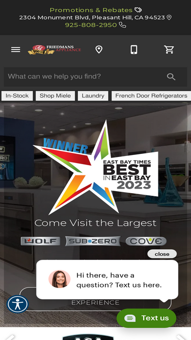 65%Friedmans Appliance in Pleasant Hill, CA has the largest in-stock inventory in the Bay area of your favorite luxury home and kitchen appliances. Shop now.