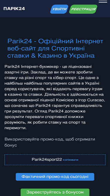 59%Parik24 – ліцензійне онлайн-казино та букмекерська контора 🎲 Вигідні бонуси, фріспіни, топові слоти та лайв-ігри ✅ Грай безпечно та зручно!