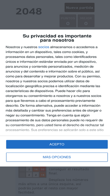 84%el 2048 es un puzzle que consiste en mover casillas con números. junta los números hasta conseguir el 2048.