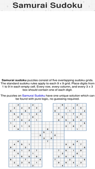 69%samurai sudoku puzzles and solver with hints and step-by-step solutions. print samurai sudoku puzzles free at several grid sizes.