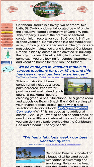 89%caribbean breeze is a beachfront, condo rental on st. croix. 2 bedroom, 2 bath, a/c, pool, tennis, every amenity, spectacular oceanfront location, close to town and restaurants. site includes extensive tourist information.
