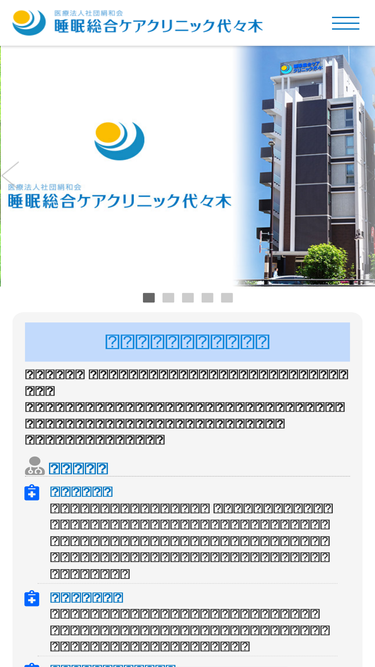 100%睡眠総合ケアクリニック代々木では、睡眠障害の中でもっとも身体的な影響の大きい睡眠時無呼吸症候群、不眠症、過眠症(夜十分眠っているのに昼間眠気が強く、居眠りをしてしまうもの)、概日リズム障害、睡眠相後退症候群、夜間睡眠中の異常行動や異常運動、レストレスレッグ(むずむず脚症候群)小児睡眠障害などをはじめとする各種睡眠障害に対応できる総合睡眠診療施設です。