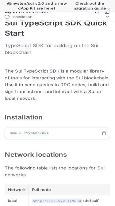 Mysten Labs TypeScript SDK Docs. Discover the power of Sui and Walrus through examples, guides, and concepts.