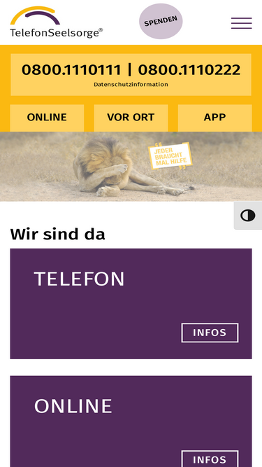 Die TelefonSeelsorge® ist in Deutschland ein Seelsorgeangebot in Verantwortung der Evangelischen und der katholischen Kirche.