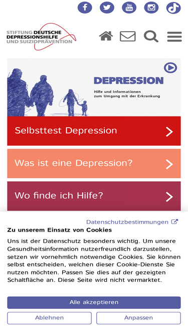 100%Informationen zu Depression, Hilfsangeboten und Selbsttest in 19 Sprachen. iFightDepression‑Tool in 15 Sprachen verfügbar.