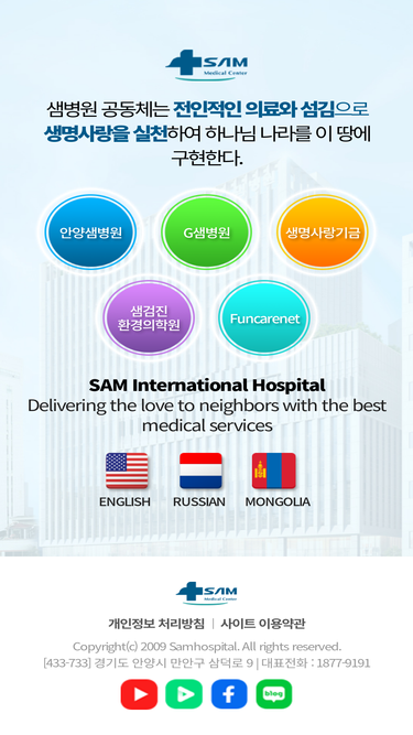 98%글로벌 종합병원그룹, 검진환경의학원, 통합암병원(A.I), 국제병원, 한방네트워크, 안양샘병원 여성의학센터, 효산의과학생명연구원