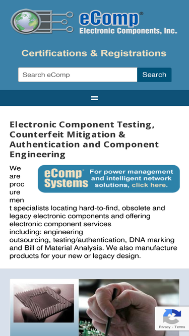 88%eComp is an independent ISO 9001:2008 certified electronic component testing lab for aerospace, defense, medical and commercial industries.