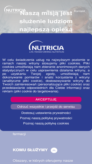 Nutricia oferuje rozwiązania żywieniowe wpływające na zdrowie i dobre samopoczucie w kluczowych momentach życia konsumentów.