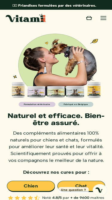 85%Croquettes, friandises, pâtées et compléments pour chiens et chats – sains, validés par des vétérinaires et adaptés aux besoins de votre animal. Basé sur la science, adoré par plus de 80 000 parents d’animaux.