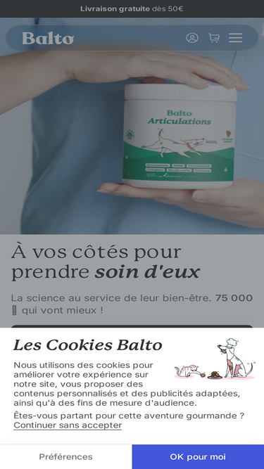 Formulés par notre équipe vétérinaire, les produits Balto soutiennent le bien-être de plus de 75 000 chiens en Europe.