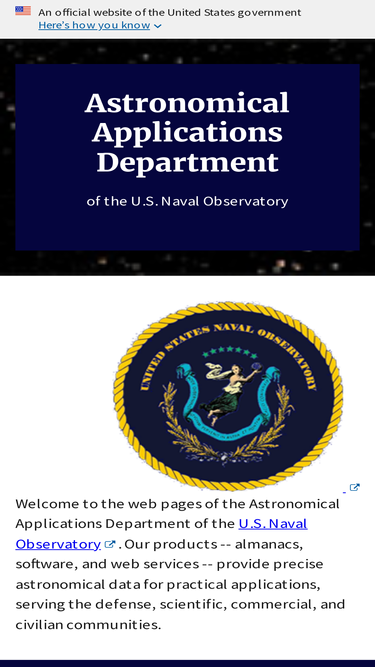 90%the astronomical applications departmentof the u.s. naval observatory computes, from fundamental astronomicalreference data, the position, brightness, and other observablecharacteristics of celestial bodies, as well as the circumstancesof astronomical phenomena. this information is of criticalimportance to navigation, military operations planning,scientific research, surveying, accident reconstruction,architecture, and everyday activities. the products of the aadepartment - publications, software, algorithms, and expertise -are used by the u.s. navy and the other armed services, civiliangovernment agencies, the scientific research community, and thepublic. our products are regarded as benchmark standardsthroughout the world. the department also carries out a modestresearch program in celestial mechanics and positional astronomyto enable it to meet future needs.