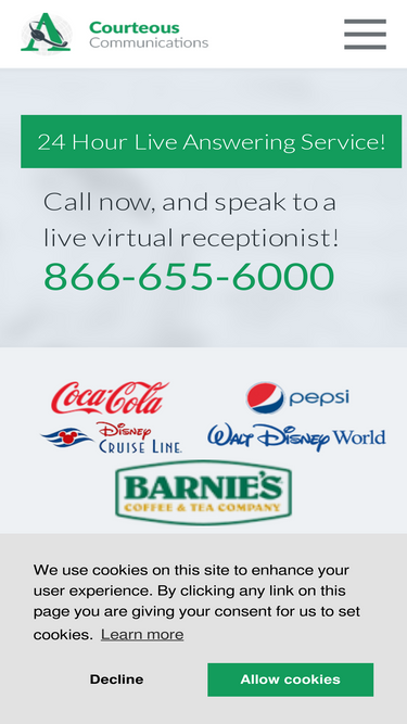 91%Answering Services for Every Industry Award winning personalized 24-hour live answering services with over 30 years experience-serving clients across the United States. With four affordable answering service plans, A Courteous Communication provide a cost effective method to handle out of hour calls or handle live inbound calls when your staff are unavailable. Find more informationRead more