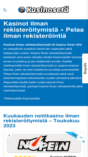 88%Katso parhaat kasinot netissä! Listaamme suomalaisille turvalliset ja uudet kasinot verkossa. Löydä kasino kokeiltavaksi! Tiedot on päivitetty: huhtikuu 2025.