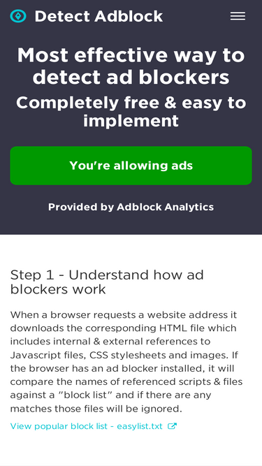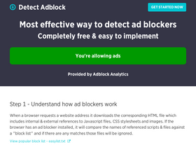 84%Detect Adblock is the easiest & most effective way for detecting visitors to your website who are using an adblocker. And best of all, it's completely free.