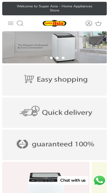 100%Super Asia Appliances encompasses a wide range of home appliances, which include Fully Automatic Machines, Semi-Automatic Washing Machines, Spinners, Air Coolers, Fans, Gas & Electric Water Heaters, Water Dispensers, Electric Water Coolers, Electric Heaters, Insect Killers, Microwave Ovens, Gas Hobs and more...