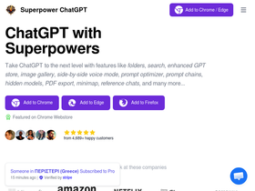 ChatGPT with Folders, Search, Enhanced GPT Store, Image Gallery, Minimap, Side-by-Side Voice GPT, Right-click Functions, Reference chats, Auto GPT Folders, Auto Archive, Export, Prompt Optimizer, Prompt Chains, Hidden Models and more