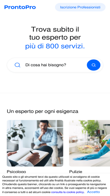 65%ProntoPro è il marketplace per servizi professionali leader in Italia. Ti permette di trovare esattamente quello che stai cercando in modo semplice e affidabile.