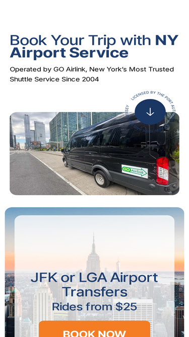 77%reserve nyc airport shuttle or airport car service to jfk, lga, & newark through go airlink nyc. authorized by the port authority of ny & nj.
