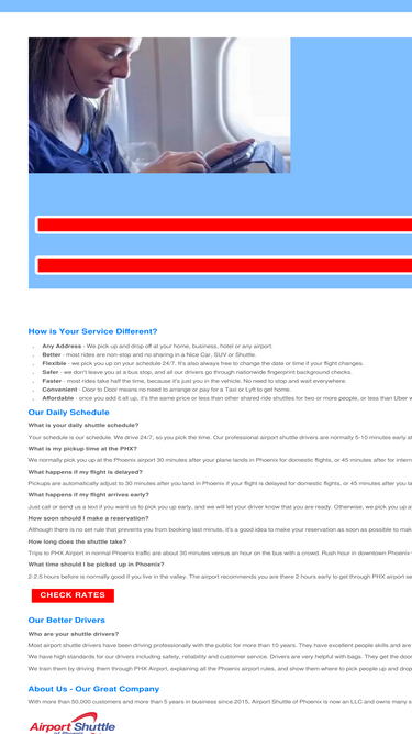 64%The best airport shuttle for business travelers, offering 24/7 door-to-door service to PHX Sky Harbor, AZA, and any Arizona address. Save 10% on round-trip bookings.