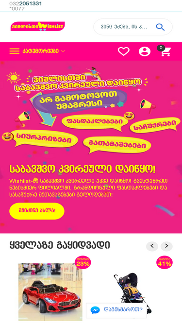 85%წესები და პირობები სავაჭრო პოლიტიკა მოვაჭრის დასახელება შპს „ონლაინ მოლი“ საიდენტიფიკაციო კოდი 404543561 იურიდიული მისამართი ქ თბილისი მთაწმინდის რაიონი ვ ბარნოვი- თარხნიშვილის ქ N 49/29 ბ 6 ფაქტობრივი მისამართი ქ თბილისი დავით აღმაშენებლის მე-16 კმ ელ-ფოსტა info@wishlist ge ტელეფონის...