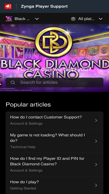 76%welcome to the zynga support page. how can we help you? we have ready answers for many common questions about black diamond casino.
