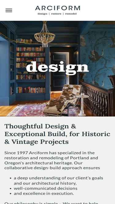 Arciform, founded in 1997, remodels vintage buildings in the Pacific Northwest. Collaborative design/build team creates remodels clients love. Benefits & openings. Join Arciform today!