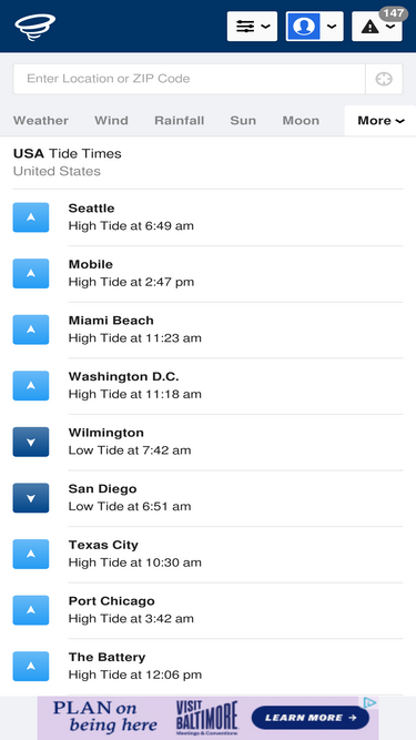 76%tides today & tomorrow; monthly tide charts; weather forecasts; doppler radar; wind; marine weather; noaa charts; fishing & boating | 1,400+ harbors in the us.