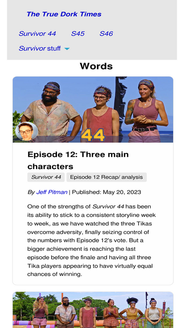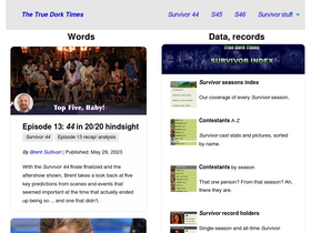 96%this site is a survivor fan community. with news and updates, cast profiles and a messageboard so fans can interact and give their feedback and opinions about the show. survivor cast profiles and photos and weekly survivor polls, survivor multimedia, survivor videos, survivor photos, survivor books, survivor dvd, survvior merchandise, plus much more.