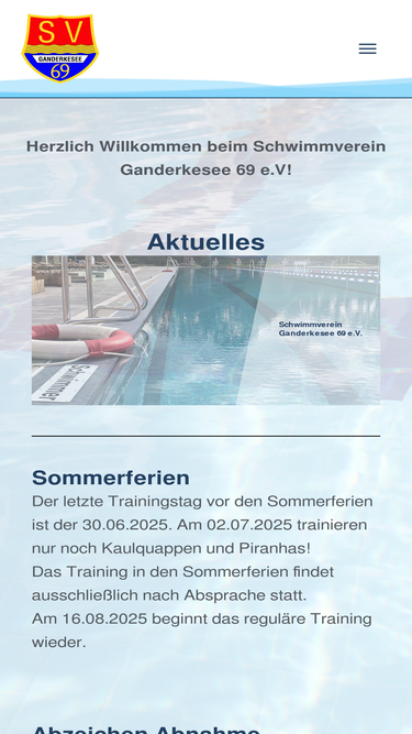 Trainingszeiten 2025 Hallenbadsaison – gültig ab 01.10.2024 Gruppe Treffen Ort Wasserzeit Trainer Telefon-Nr. Montag 16:00 – 21:15 Krabben I 16:00 Hallenbad 16:10-16:55 Christin Kopka*¹ 0172/4721820 Krabben II 16:50 Hallenbad 17:00-17:45 Christin Kopka*¹ 0172/4721820 Haie 17:15 Hallenbad 17:45-18:45 Trainerteam Delfine+Haie 0176/97454324 Delfine 17:15 Hallenbad 17:45-19:00 Trainerteam Delfine+Haie 0176/97454324 Pinguine 18:30 Hallenbad 18:45-20:00 Simon Richter*¹ 01573/6143827 […]