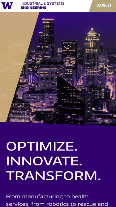 55%Mailing Address Industrial & Systems Engineering University of Washington Box 352650 Seattle, WA 98195 Phone 206-543-1427 Shipping Address Industrial & Systems Engineering University of Washington 3900 E Stevens Way NE Mechanical Engineering Building, Room G6