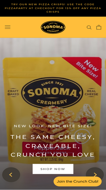 79%OUR STORY Our heritage dates back to 1931 where Sonoma Creamery® cheese experts first began crafting artisan cheeses in Sonoma, California. Since then, our brand has been rooted in authenticity with real natural ingredients at our core. In 2014 we began making uncompromisingly craft-baked snacks with high quality ingre