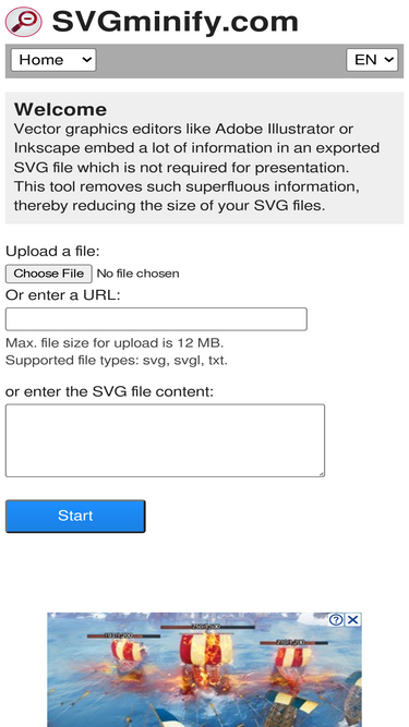 91%online svg cleaner and minifier. remove superfluous cruft and reduce the size of generated svg files.
