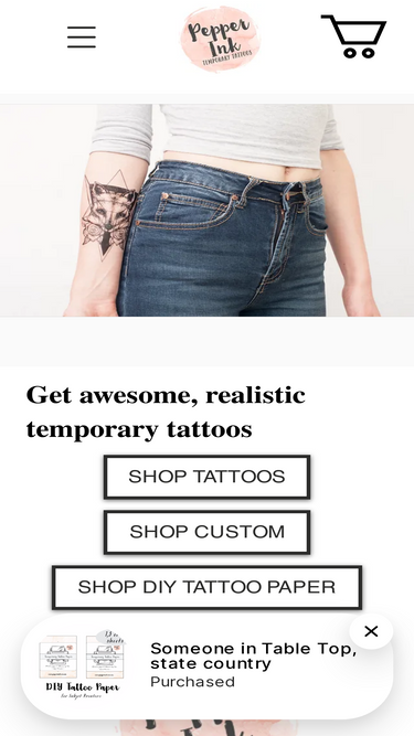 89%Pepper Ink: Australia's leading Temporary Tattoos & Custom Tattoos store. Get realistic, long lasting tattoos & DIY tattoo paper here.