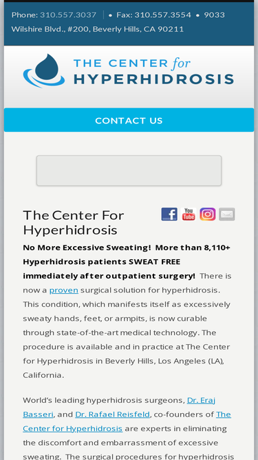 100%Eliminate sweaty palms, hands, feet & armpits. Stop hyperhidrosis with one of the world’s most experienced & recognized hyperhidrosis doctors.