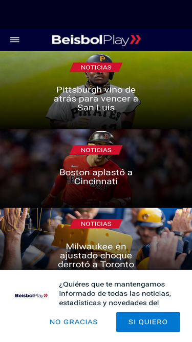 92%Noticias del béisbol de Grandes Ligas (MLB), tus peloteros y equipos, Yankees, Dodgers, Mets y Padres, más la LMB, LMP, LIDOM y LVBP.