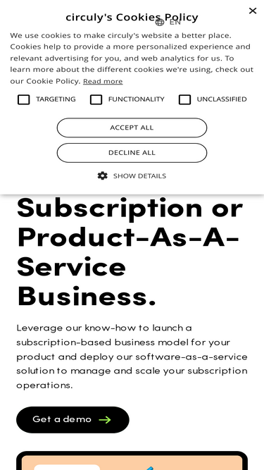 82%circuly is a subscription management software solution that enables companies to launch a long-term rental or subscription business for physical products and scale operations by automating subscription management, recurring billing, invoicing, product return, refurbishing, and more.