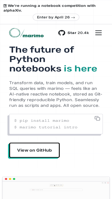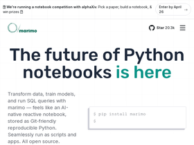 84%Explore data and build apps seamlessly with marimo, a next-generation Python notebook.