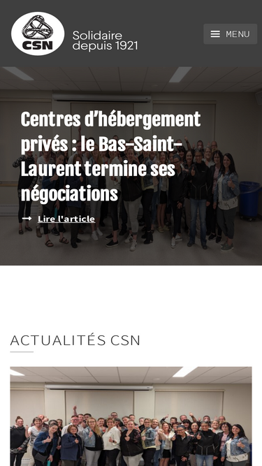 93%Le portail de la CSN pour suivre les luttes et les victoires des quelques 330 000 membres de la Confédération des syndicats nationaux - CSN