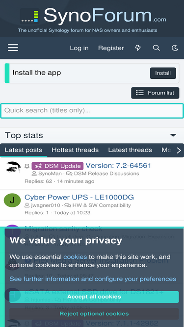 100%The unofficial Synology forum for NAS owners and enthusiasts. Whether you need support for your Synology NAS device or other network matters, our well-educated users are at your disposal.