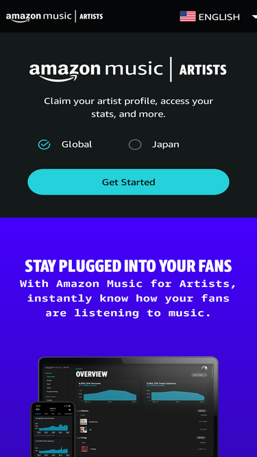 100%with amazon music for artists, instantly know how your fans are listening to your music. monitor trends or dive deep into the data. be armed with the knowledge you need to take your marketing into its next phase.