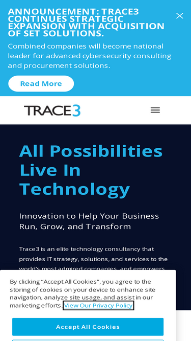 62%Trace3 delivers business transformation. We consult on, integrate, and operate convergent solutions across data, security and cloud that embrace emerging technology and drive measurable value.