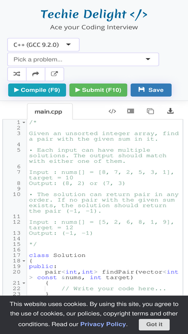 96%This post lists out the top 100 most liked Data Structures and Algorithm problems. Find a pair with the given sum in an array, Longest Common Subsequence Problem, Deletion from BST, Level Order Traversal of a Binary Tree, Insertion in BST, ...