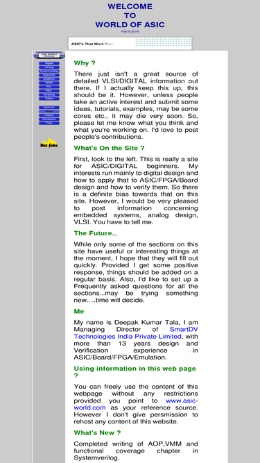 80%if you are in asic or fpga design, then this is the page you should visit, here you will find tutorials on verilog, systemverilog, vera,digital electronics, systemc, specman, unix scripting