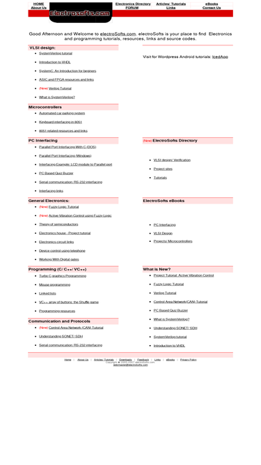 electrosofts.com is your place to find electronics tutorials, programming resources, exmples and source code for free download..