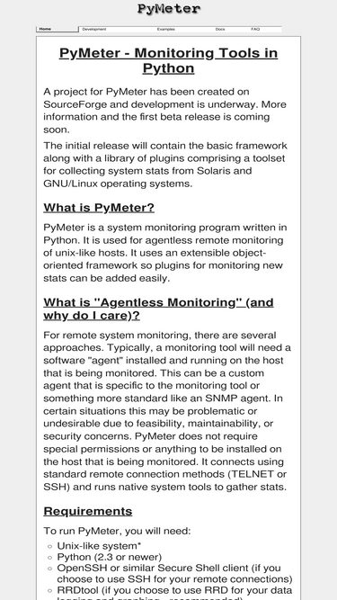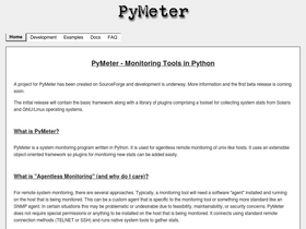 100%PyMeter is a system monitoring program written in Python. It is used for agentless remote monitoring of unix-like hosts.