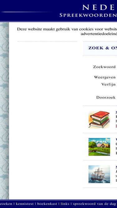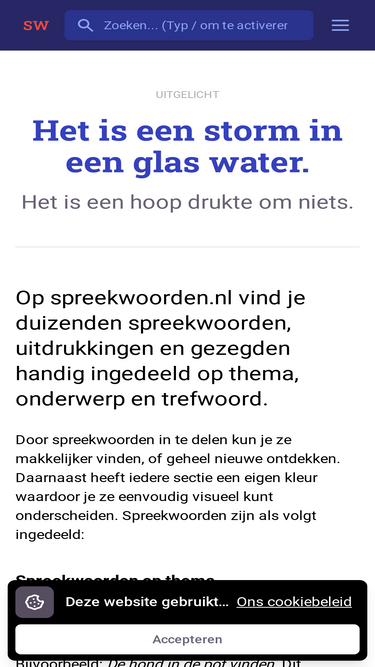 100%Duizenden Nederlandse spreekwoorden en gezegden inclusief betekenis, overzichtelijk weergegeven op thema, betekenis, trefwoord en werkwoord.