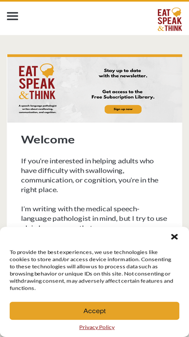 100%eat, speak, & think offers resources to help people living with swallowing, communication, or cognitive problems. sign up for the free subscription library!