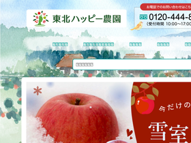 80%東北の「おいしい」をお届けする東北ハッピー農園 りんご、桃、梨、さくらんぼ、ラ・フランスなどのフルーツ、新鮮野菜、米など、東北地方の業(わざ)と真心を産地直送。 いつでも、どこででも、東北の旬を味わう幸せをお届けします。