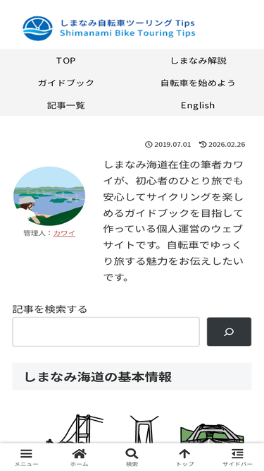 100%初心者でも安心の「しまなみ海道サイクリング」。距離や所要時間、レンタサイクルの選び方、オススメの旅行プランなど自転車旅行計画に役立つ情報や、スポーツ自転車をこれから始めようとしている自転車ビギナー向けのサイクリング情報を現地在住サイクリストが発信しています。
