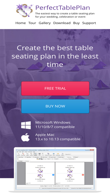 100%Perfect Table Plan - software for table plans. Design and print a table seating plan for your wedding or event on your PC or Mac. Download a free trial now.